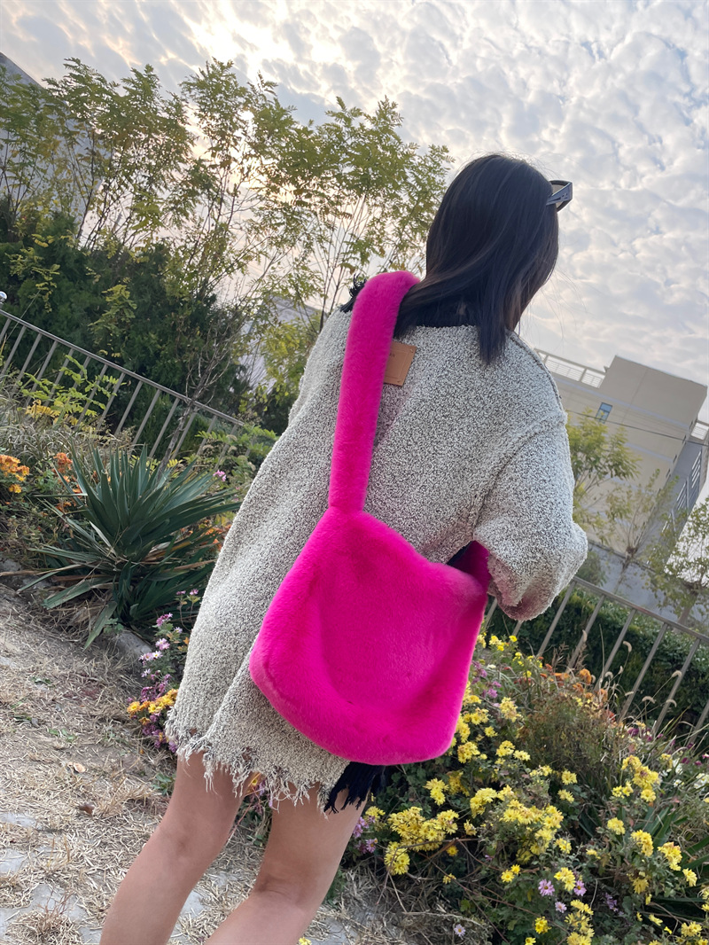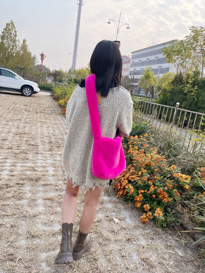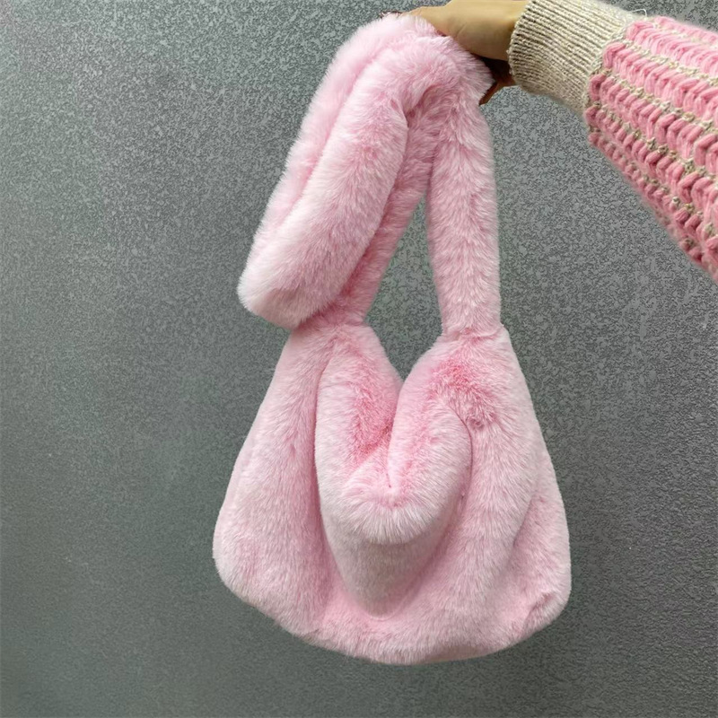 New Rabbit Plush Bag for women Versatile Shoulder Y2K Rose Red Millennium Spicy Girls Style Crossbody Plush Student armpit Bag