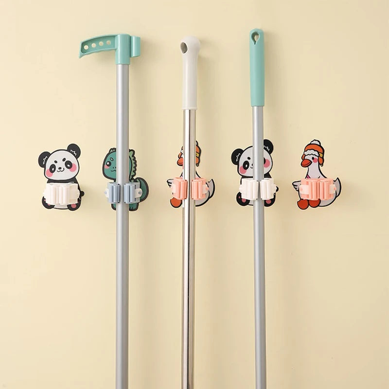 Keep your cleaning tools neat and organized with the Cartoon Mop & Broom Holder. Designed for easy, no-drill installation, this space-saving and adorable cartoon holder securely grips brooms, mops, and more with its adjustable rolling ball mechanism. Perfect for homes, offices, and more, it’s a stylish and practical solution to cluttered corners.