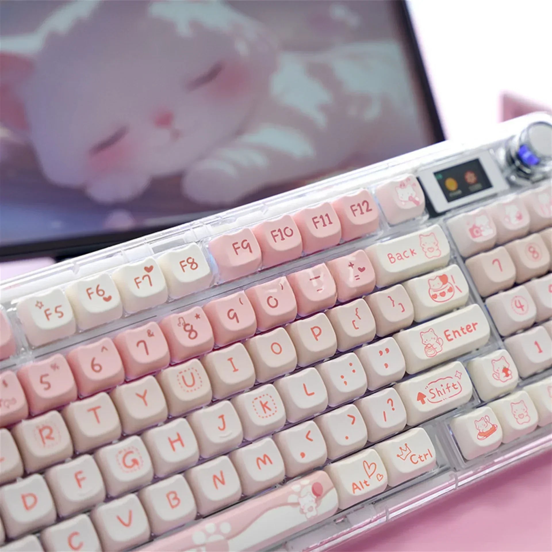 Give your keyboard a soft, dreamy glow with the Soft Kitten Keycap Set! Featuring 134 PBT dye-sublimated keycaps with a charming kitten theme, this set adds a sweet and stylish touch to your mechanical keyboard. Designed for MX switches and compatible with a wide range of layouts, it's the ultimate upgrade for aesthetic lovers and cozy setup enthusiasts!