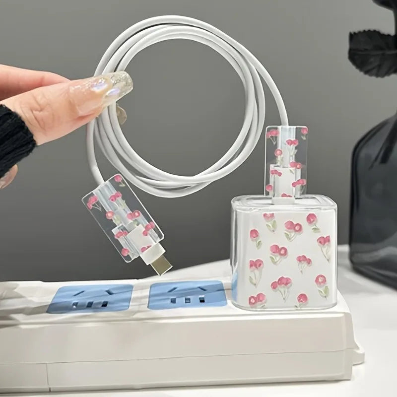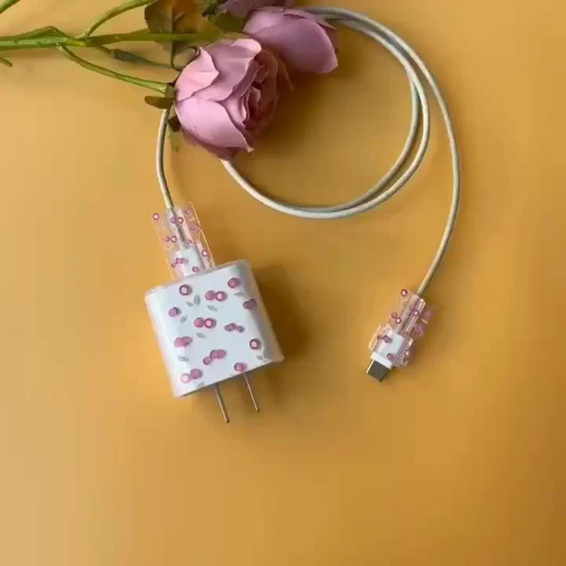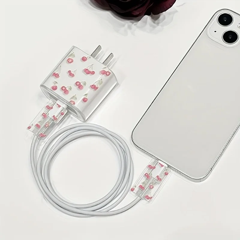 US Charger Protection Cover for iPhone, Cute Cherry USB Cable Winder, Protector Shell Case for Apple 12, 13, 11 Pro Max, 20W
