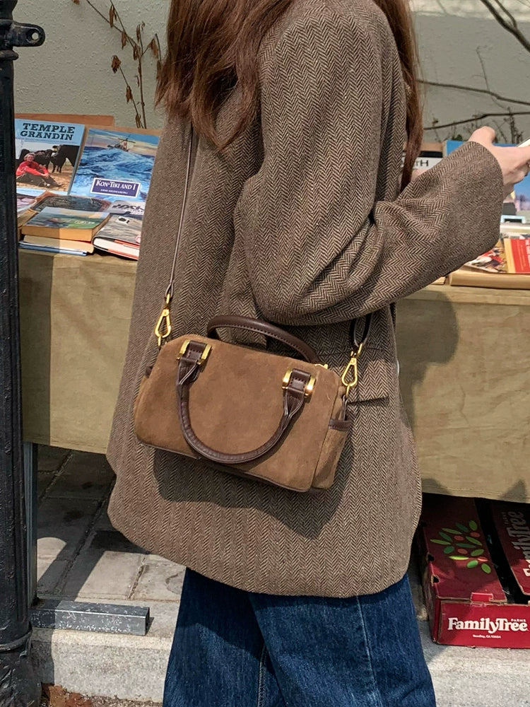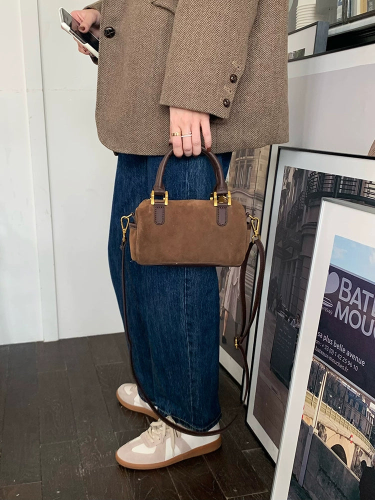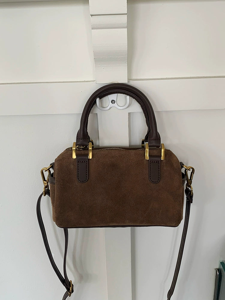 Vintage Suede One-Shoulder Crossbody Boston Pillow Bag